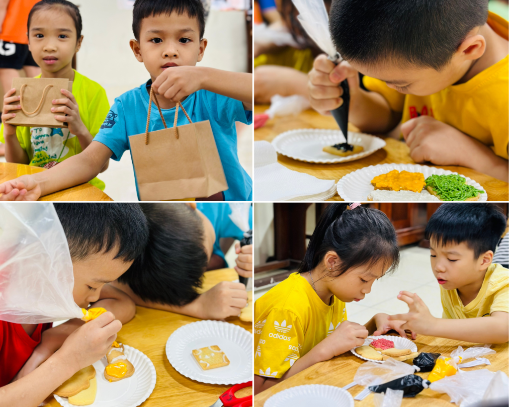 Trong chương trình, các em nhỏ được hướng dẫn làm bánh quy từ những nguyên liệu đơn giản. Các em đã rất hào hứng khi được tự tay tạo hình bánh và trang trí bánh quy gừng theo ý thích. Những chiếc bánh quy Noel đầy màu sắc và hình dáng ngộ nghĩnh đã ra đời dưới đôi bàn tay nhỏ bé của các em.