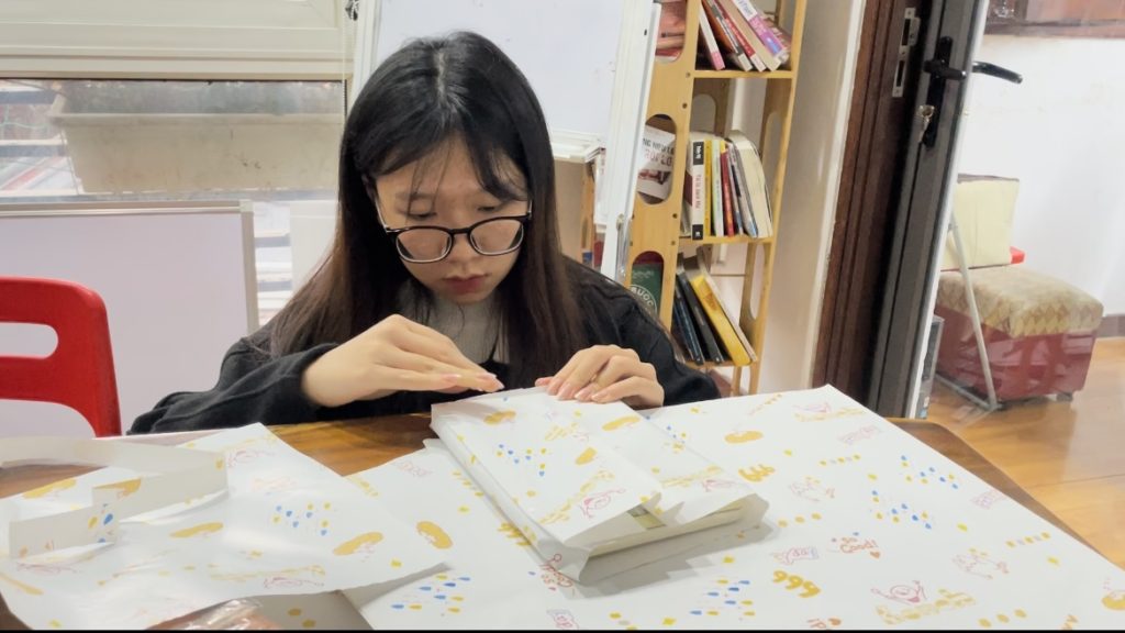 Ngay từ những ngày chuẩn bị, các anh chị nhân viên công ty đã háo hức tự tay làm những viên kẹo nougat ngọt ngào, tỉ mỉ gói từng món quà nhỏ, với mong muốn gửi gắm trọn vẹn tình yêu thương đến các em.