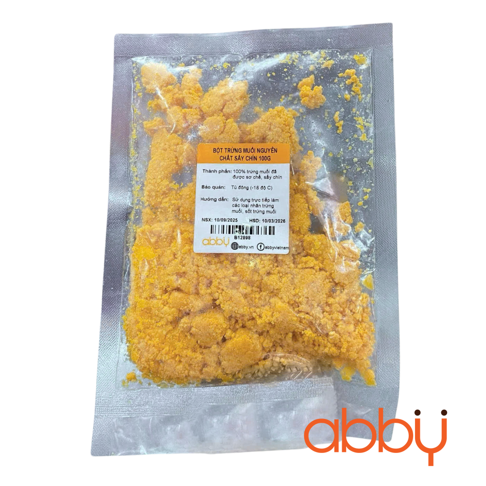 Bột trứng muối nguyên chất sấy chín 100g là lựa chọn tiện lợi dành cho những ai yêu thích hương vị mặn mà, béo bùi đặc trưng của trứng muối nhưng không có nhiều thời gian chế biến. Chỉ cần vài thìa bột là bạn đã có ngay topping hoặc gia vị “thần thánh” nâng tầm hương vị món ăn.