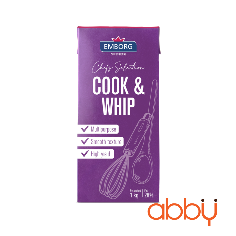 Nếu đang tìm một dòng kem sữa vừa đánh bông đẹp, vừa nấu được đa dạng món thì Whip & Cook Emborg 1L chính là lựa chọn “2 trong 1” cực kỳ tiện lợi. Với chất kem mượt, vị sữa thơm béo tự nhiên và độ ổn định cao khi đánh, sản phẩm giúp bạn tạo ra những món bánh và món mặn chuẩn vị nhà hàng. Dù là làm bánh kem, trà sữa, sốt mặn hay các món Âu, Emborg đều xử lý gọn trong một hộp 1L, không tách nước, không vón cục và giữ form tốt. Đây là sản phẩm được ưa chuộng tại các tiệm bánh, quán café và các bạn yêu bếp nhờ độ đa dụng và hương vị ổn định.